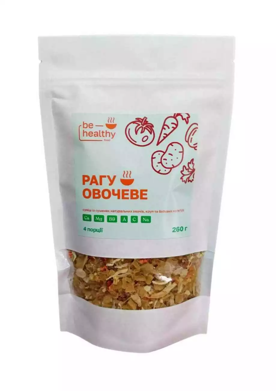 Рагу овочеве від ТМ BE HEALTHY FOOD - це дуже смачна та корисна страва! Тільки уявіть - до складу входить понад 7 видів овочів. Вони забезпечують організм вітамінами, органічними кислотами, мікроелементами, харчовими волокнами і різними поживними речовинами. Кожен овоч містить свої поживні речовини. Ще однією перевагою є низька калорійність овочів, що особливо цінується у дієтологів і людей, які вирішили скинути вагу. Адже можна швидко насититися стравою з овочів, але при цьому не думати про зайві калорії. Для приготування вам необхідно всього лиш засипати суміш в киплячу воду або бульйон та зварити його за вказаним часом. Смачного!