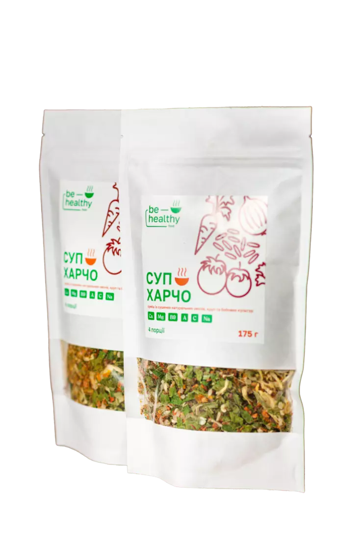 Суп "Харчо" - це традиційний грузинський суп, який зазвичай готують на основі яловичого бульйону, рису та великої кількості зелені, що робить його дуже поживним та корисним для здоров`я. "Харчо" від ТМ BE HEALTHY FOOD - знахідка, для приготування якого вам необхідно всього лиш засипати суміш в киплячий бульйон та зварити його за вказаним часом.